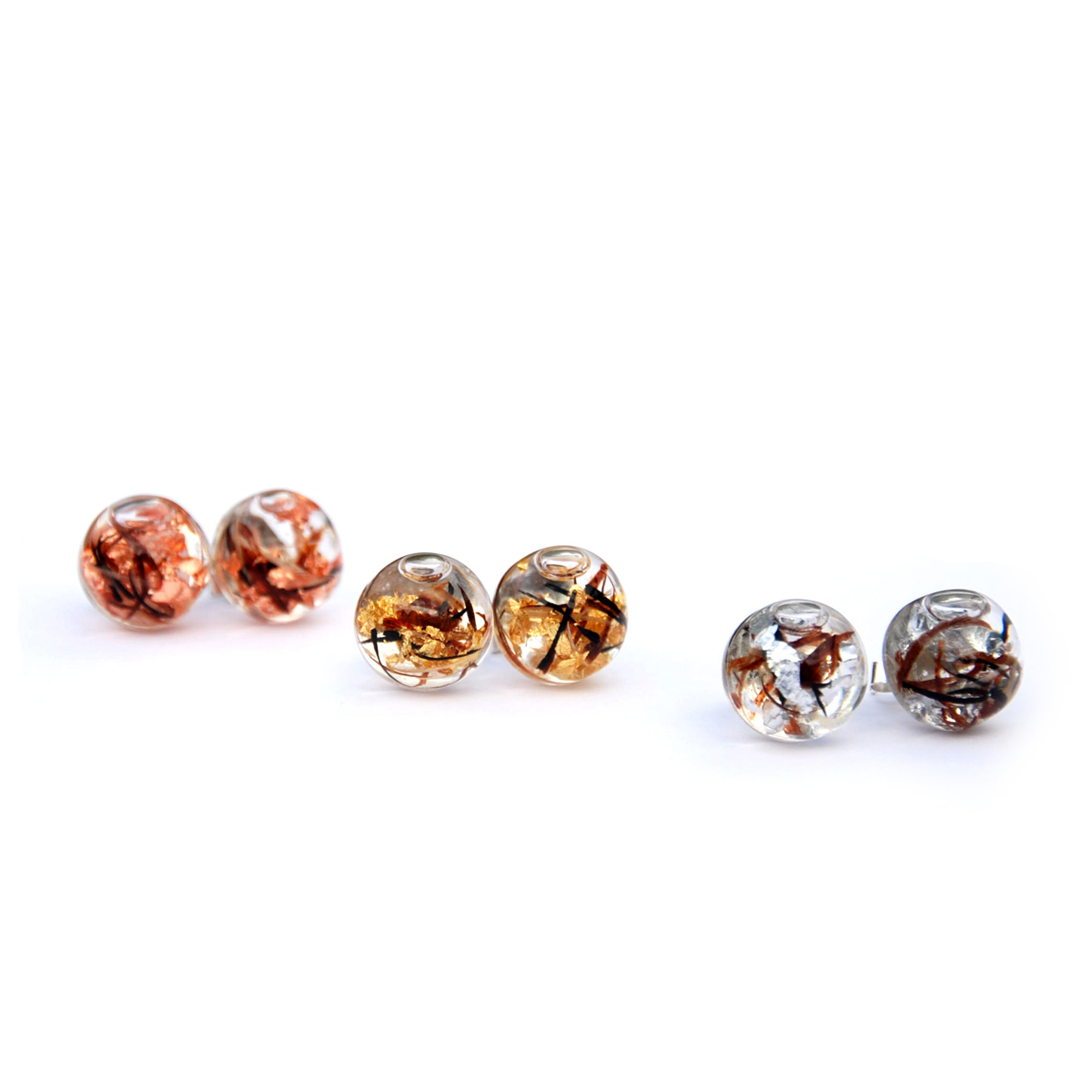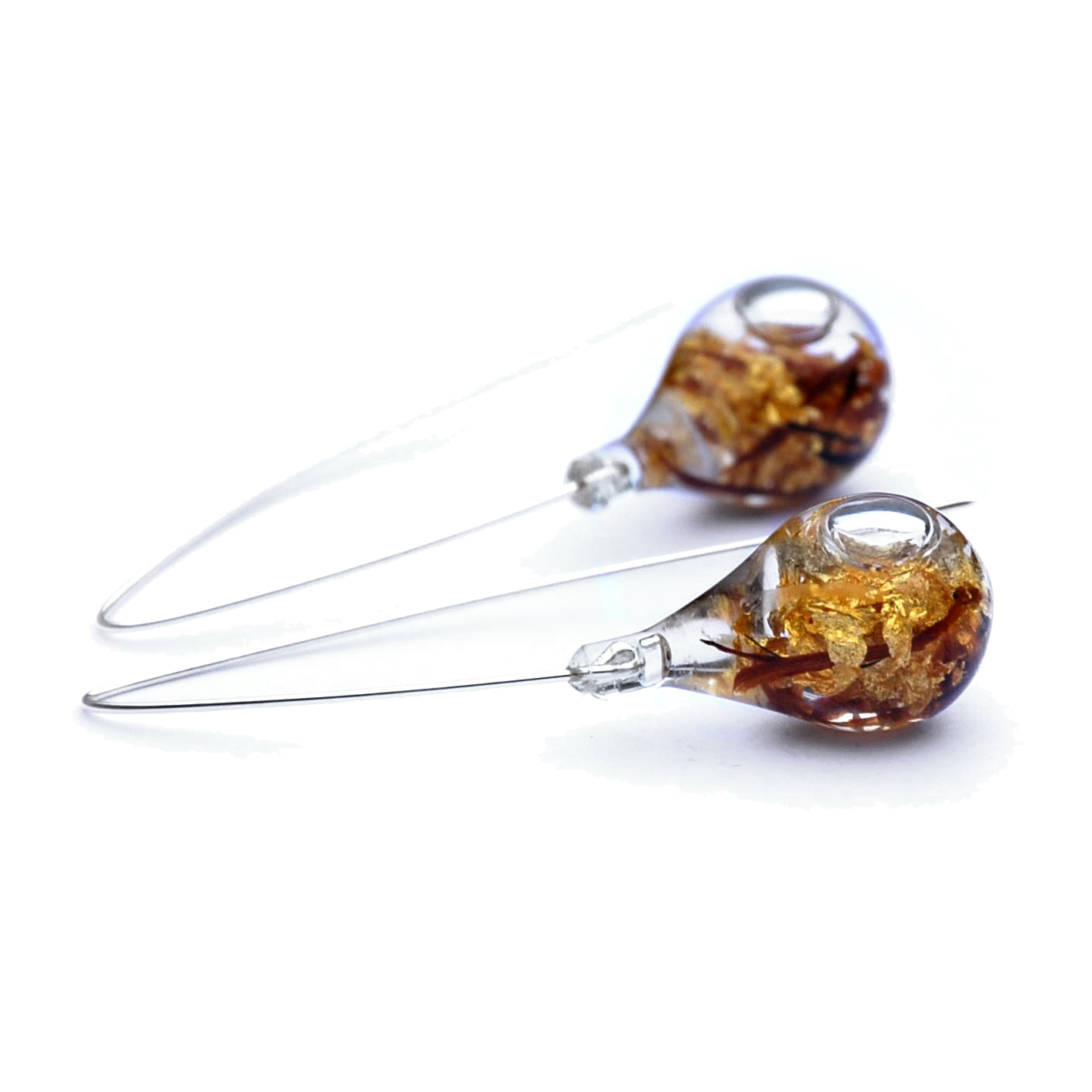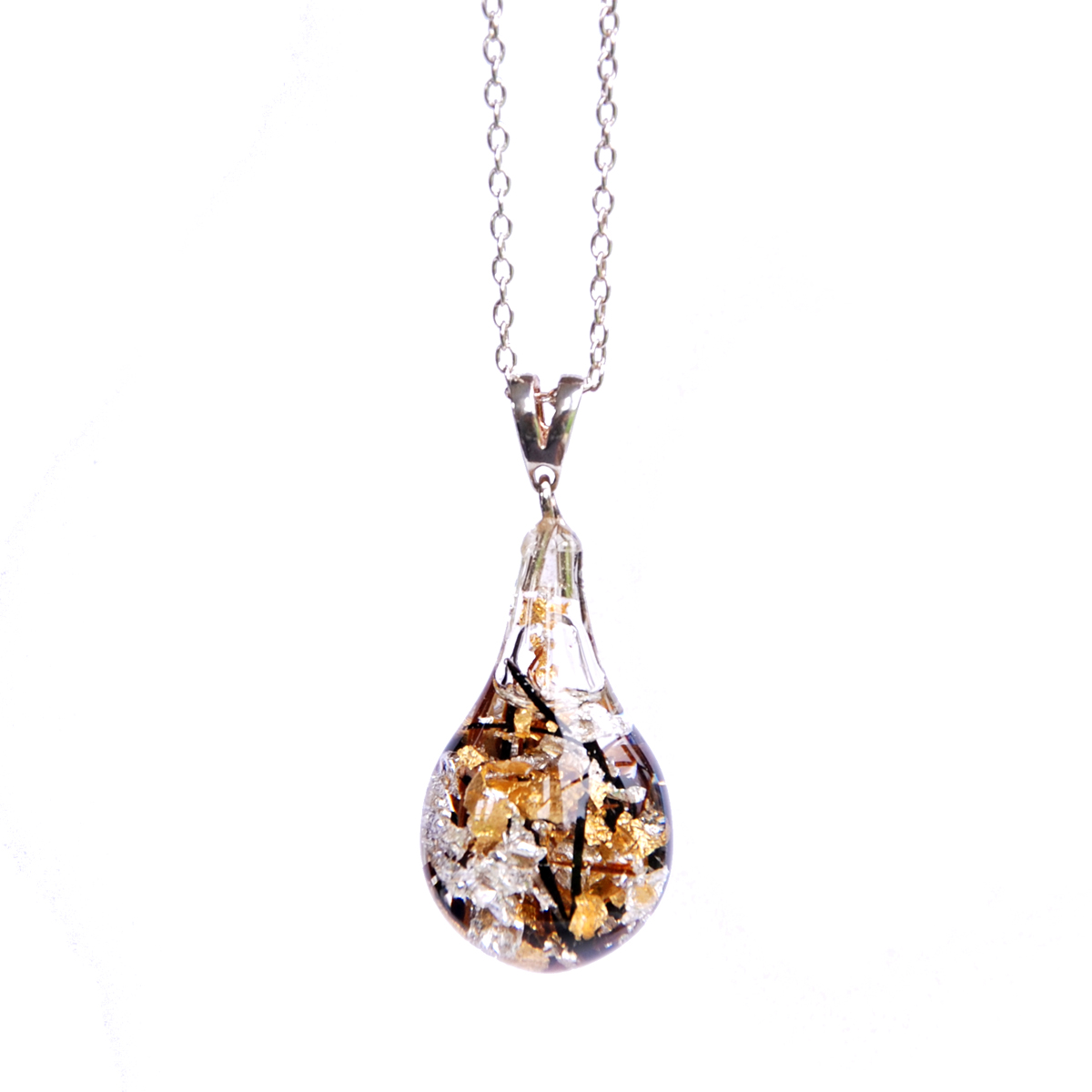 9ct yellow gold, glass, wood & gold leaf. Also available in silver & rose. TPG TG